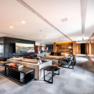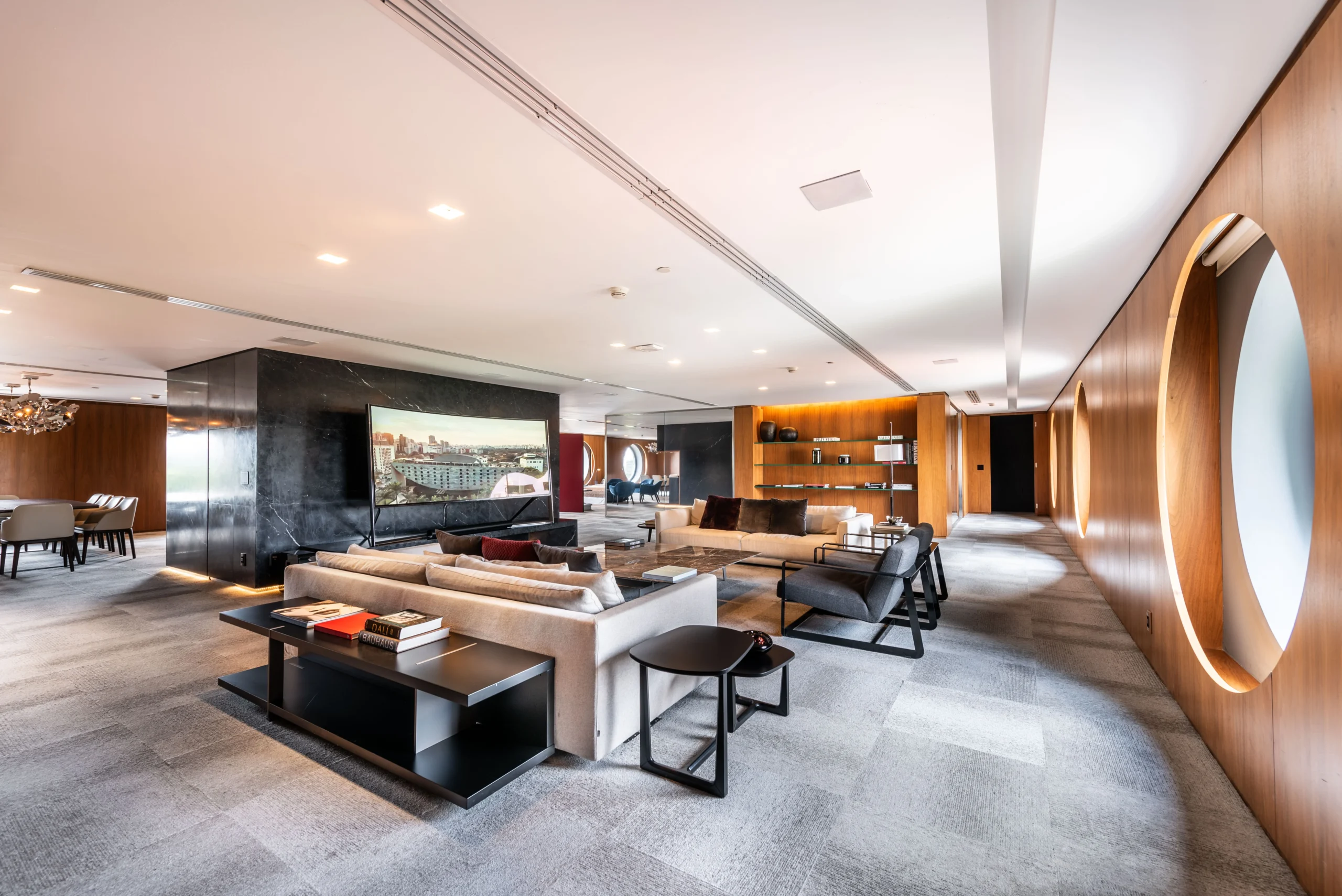 A Champs Élysées é uma suíte singular em vários sentidos. Além de ser única dentro de sua categoria e possuir uma vista privilegiada da região dos Jardins e Parque Ibirapuera, ela comporta confortavelmente até 07 pessoas na sala de estar, seja para um encontro de negócios ou para se reunir com a família – já que oferece também a comodidade de conectar-se com um apartamento da categoria Premium. A suíte Champs Elyseés está localizada no 7º andar.