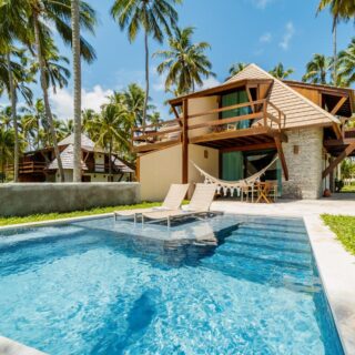 Sob um belíssimo coqueiral, à beira-mar de uma das praias mais lindas do Brasil, encontra-se nos bangalôs da Praia Pontal dos Carneiros. Bungalows Charmosos para o casal e para a família, em frente às maravilhosas piscinas naturais e poucos passos da Igrejinha de São Benedito.